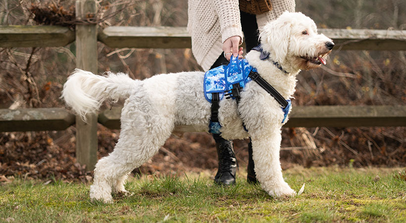 Utilizing a rear harness to gently lift your dog’s hind end offers additional support, enabling them to stand and walk with reduced risk of losing balance or falling over. This support is beneficial for brief outings, as some dogs encounter balance issues, especially during potty times.
